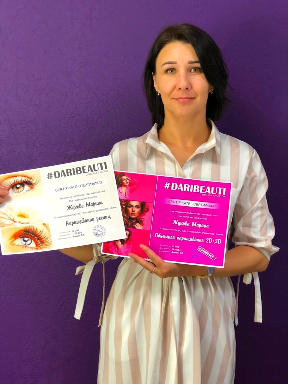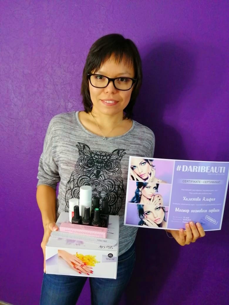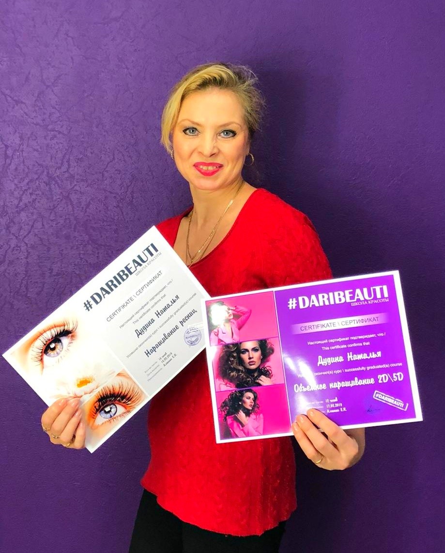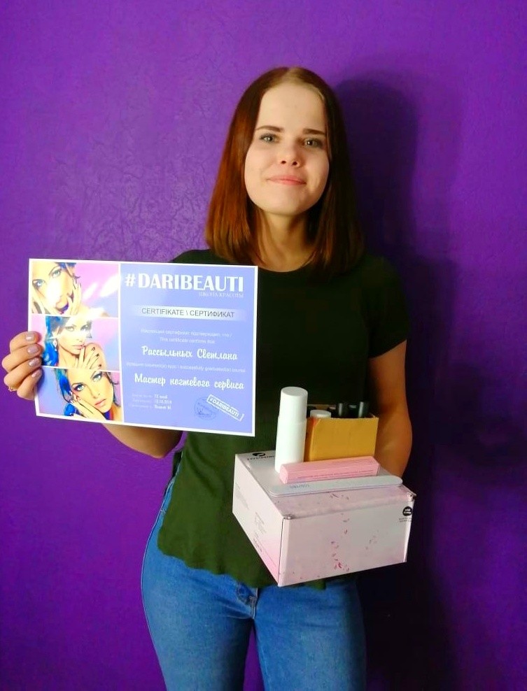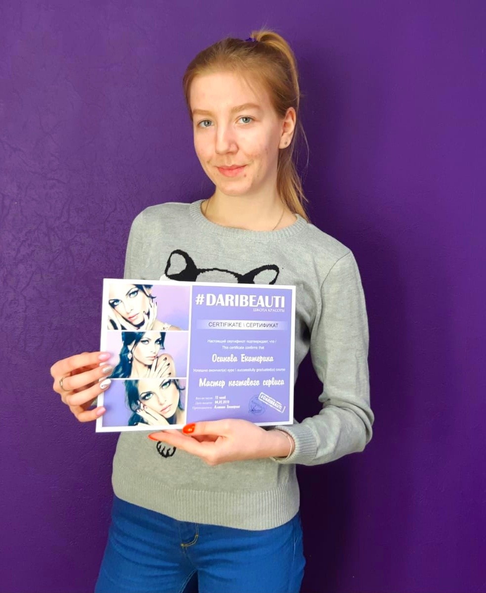 Хочу сказать слова благодарности школе красоты DARIBEAUTI, которая дала старт в новой интересной профессии. Отдельное спасибо преподавателю Алешиной Екатерине, за терпение и хорошее настроение на занятиях! !!